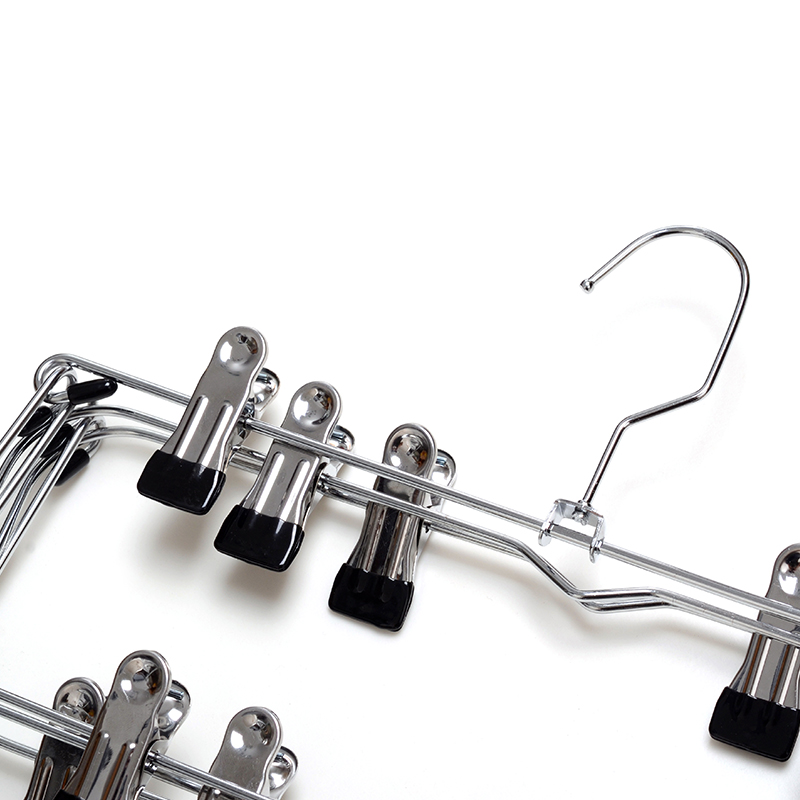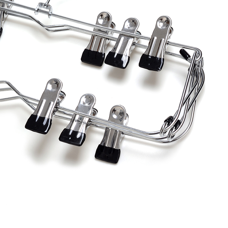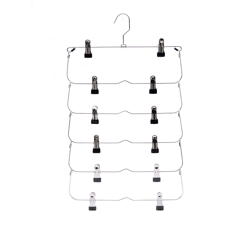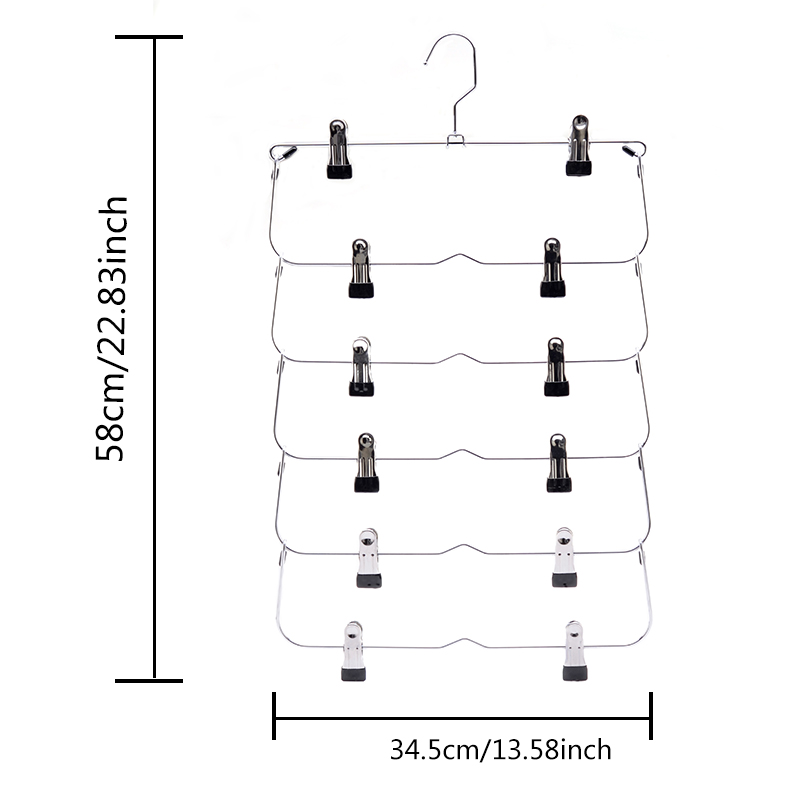 This is a pants hanger that saves a lot of wardrode space.It has 6 layers,is made of metal,and is epuipped with anti-slip clips.It is sturdy and durable,rust-proof,foldabel,and convenient for storage and carrying.