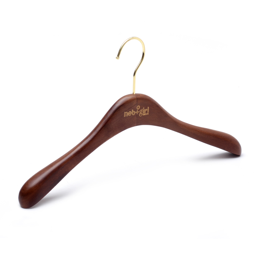 This solid wood hanger is specially designed for women's suit jackets. It is selected in a gorgeous walnut color, with hard and stable wood that can properly support the clothes. Accompanied by exquisite gold hooks and a gold LOGO, it shows a sense of texture in every detail, quietly adding a bright touch to your wardrobe.